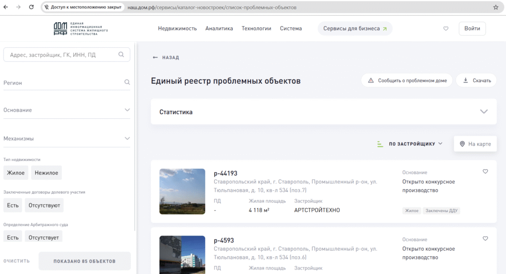 Единый реестр проблемных объектов.